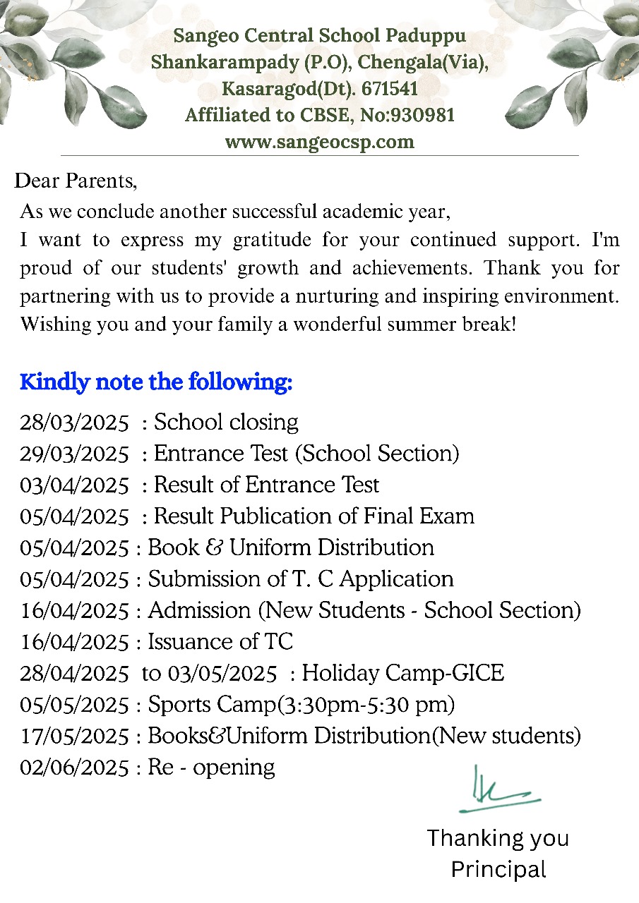 education at Sangeo creates an innate interest in all kinds of work so as to serve the